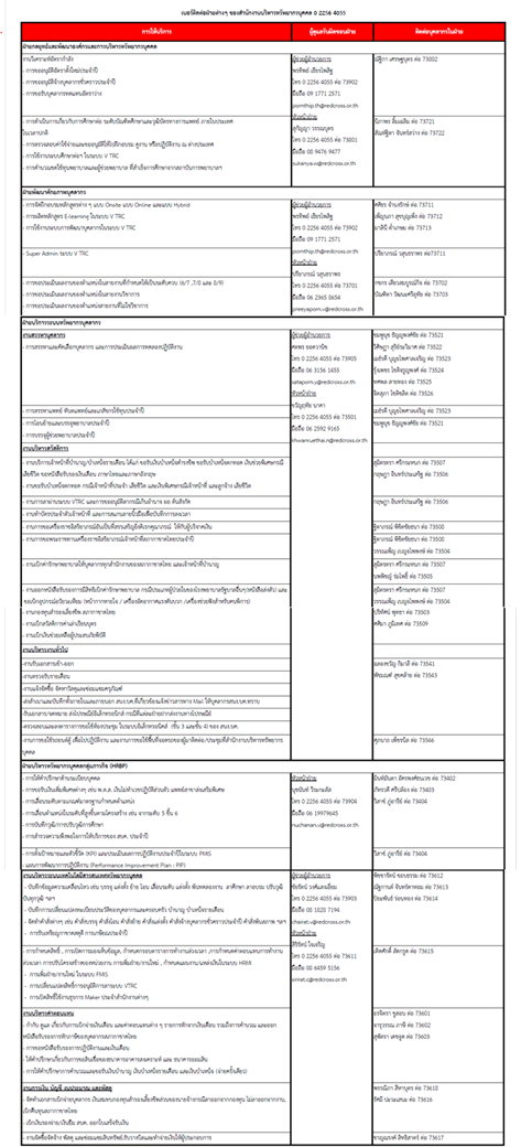 หมายเลขโทรศัพท์ภายใน สำนักงานบริหารทรัพยากรบุคคล