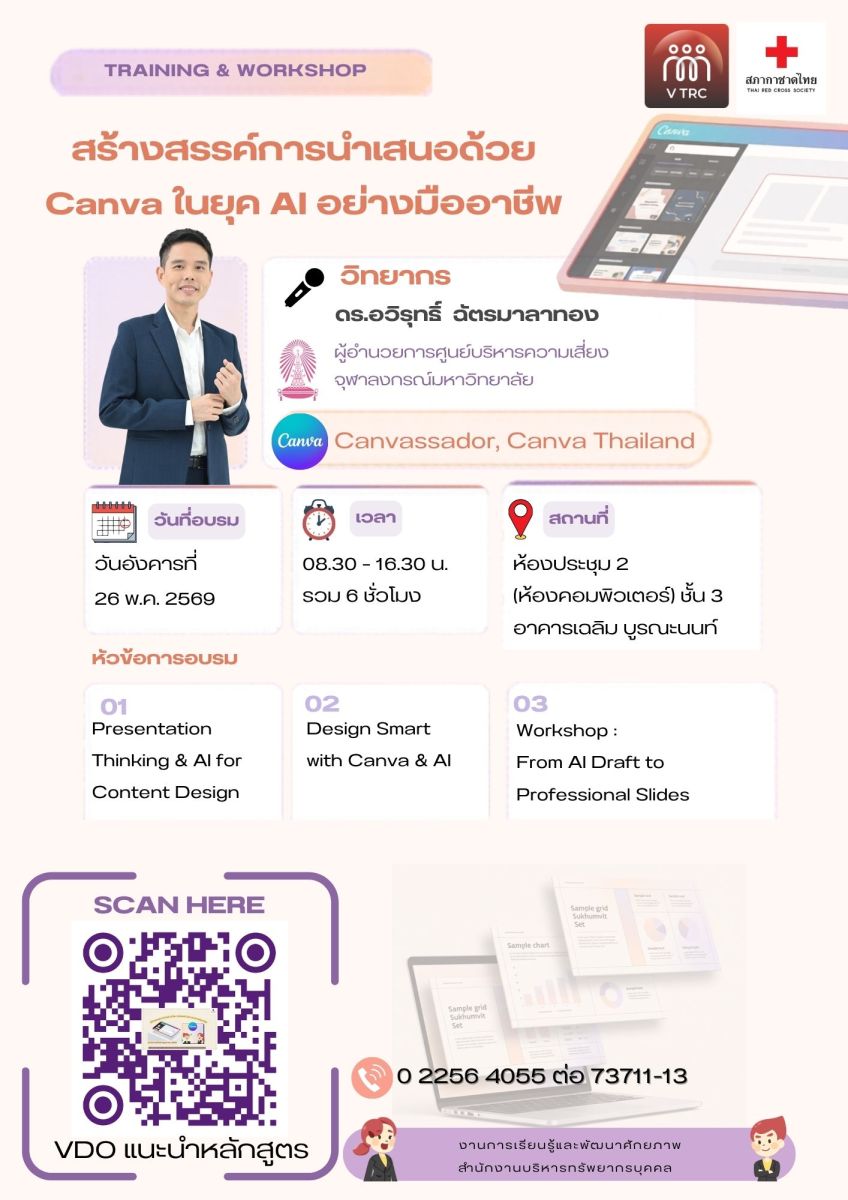 หลักสูตร สร้างสรรค์การนำเสนอด้วย Canva ในยุค AI อย่างมืออาชีพ ประจำปีงบประมาณ 2569